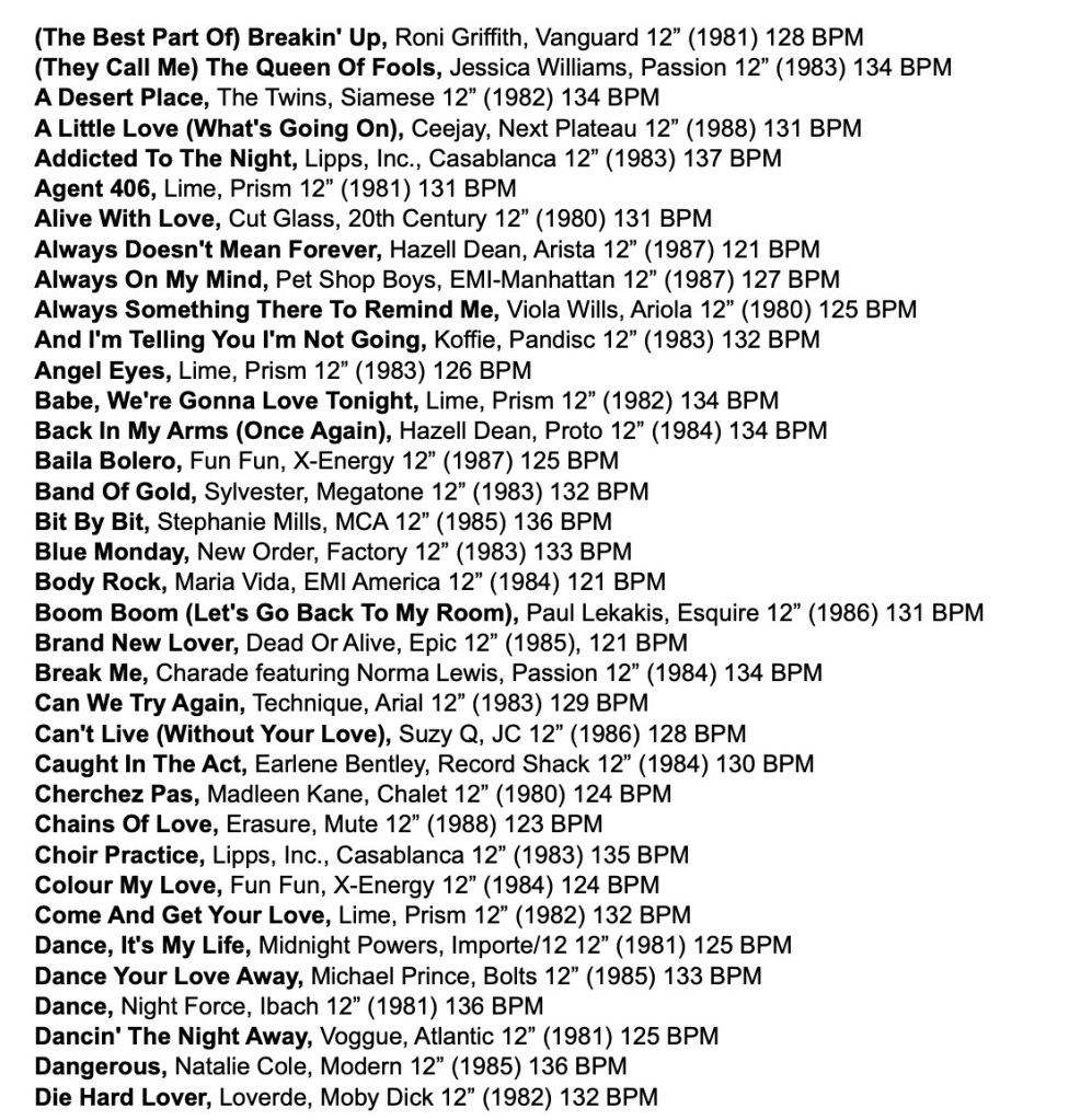 Below are a selection of Hi-NRG tracks from this chart that do not appear in any of the other Hi-NRG charts published on this blog.