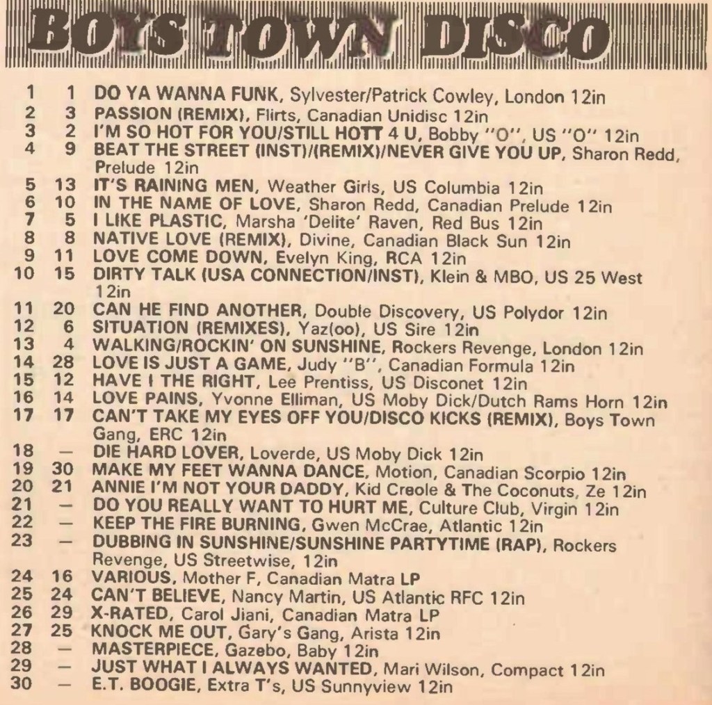 Record Mirror Boystown Disco Hi-NRG Chart 30th October 1982