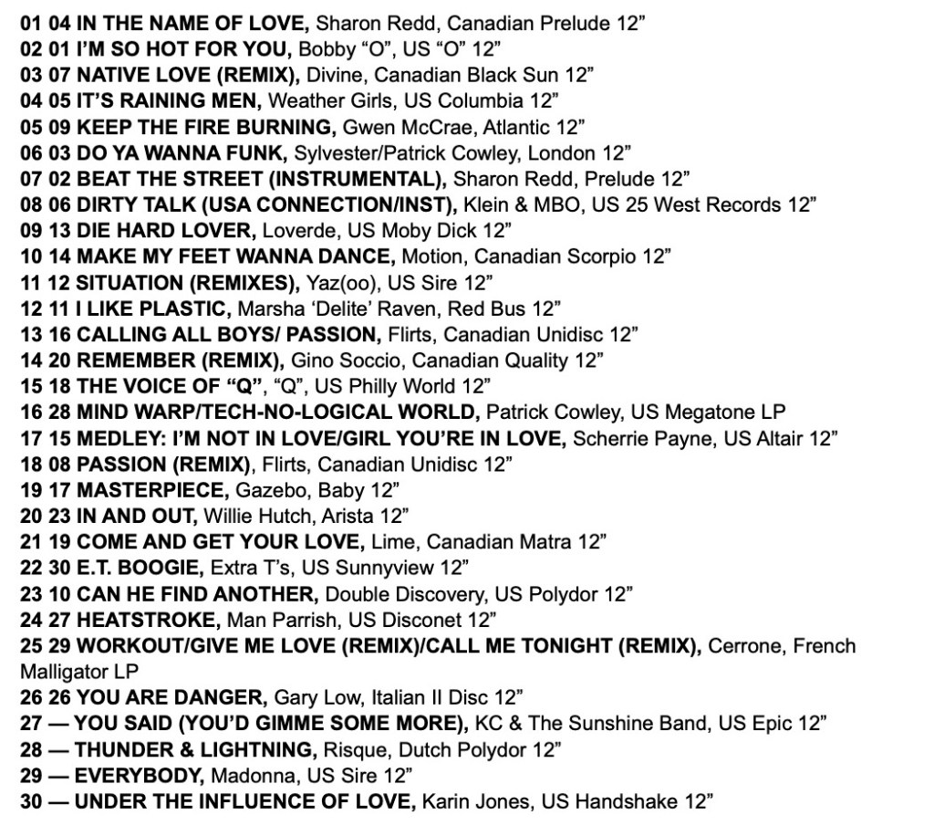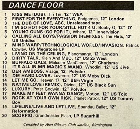 Sounds Magazine was a weeky British music magazine that concentrated more on Indie labels, Punk, New Wave and Heavy Metal. Their dance floor chart for Nocvember 1982 is very much in keeping with both the Record Mirror Hi-NRG chart and the Billboard Hot 100 Dance chart of the same time, with a crossover of tracks in all three charts.