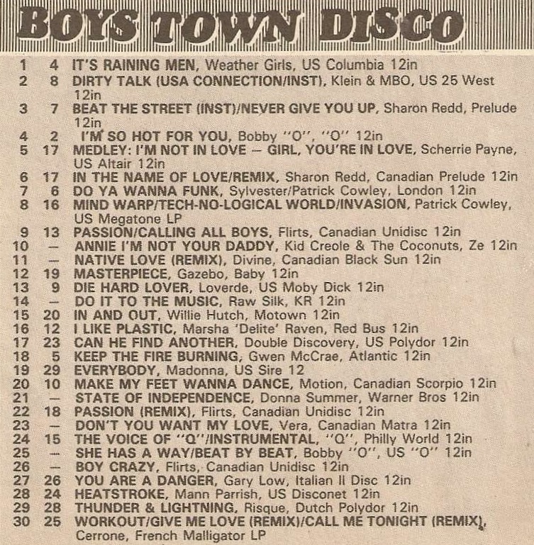 Record Mirror Boystown Disco Hi-NRG Chart 13th November 1982