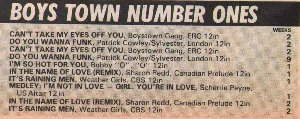 Using the same methods that James Hamilton and Alan Jones used when compling the charts, here are the top 30 Boystown Disco tracks from the Record Mirror chart entries of 1982.
