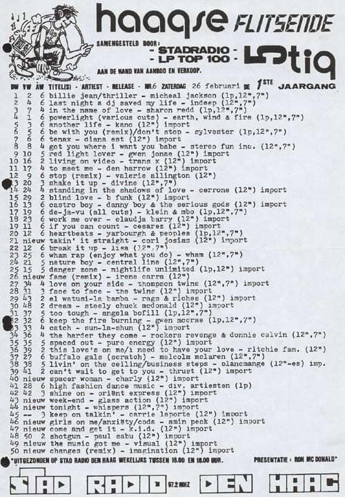 These charts are published by kind permission from Radio Stad Den Haag