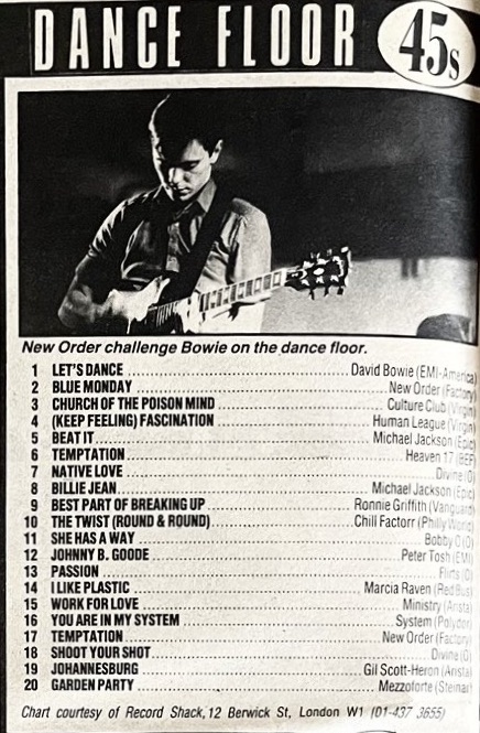 Record Shack Boystown/Hi-NRG Dance Chart 30th April 1983