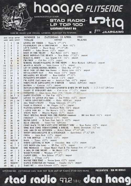 By way of comparison here is the Billboard Dance chart for the last week of April 1983. It has a good showing of Boystown and Hi-NRG, as well as Synth Pop tracks, which would find their way into in gay club DJ mix sets.