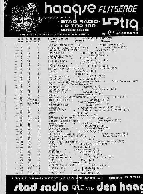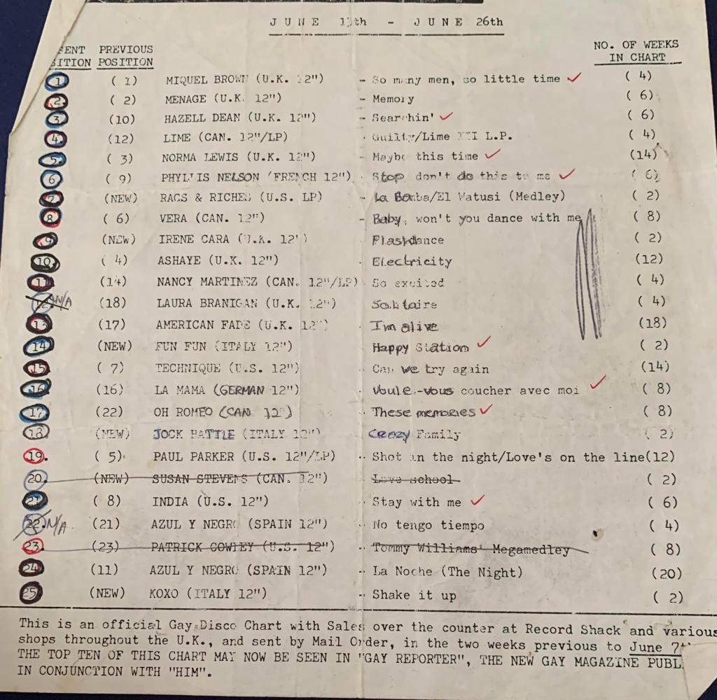 Record Mirror Boystown Disco Hi-NRG Chart 25th June 1983