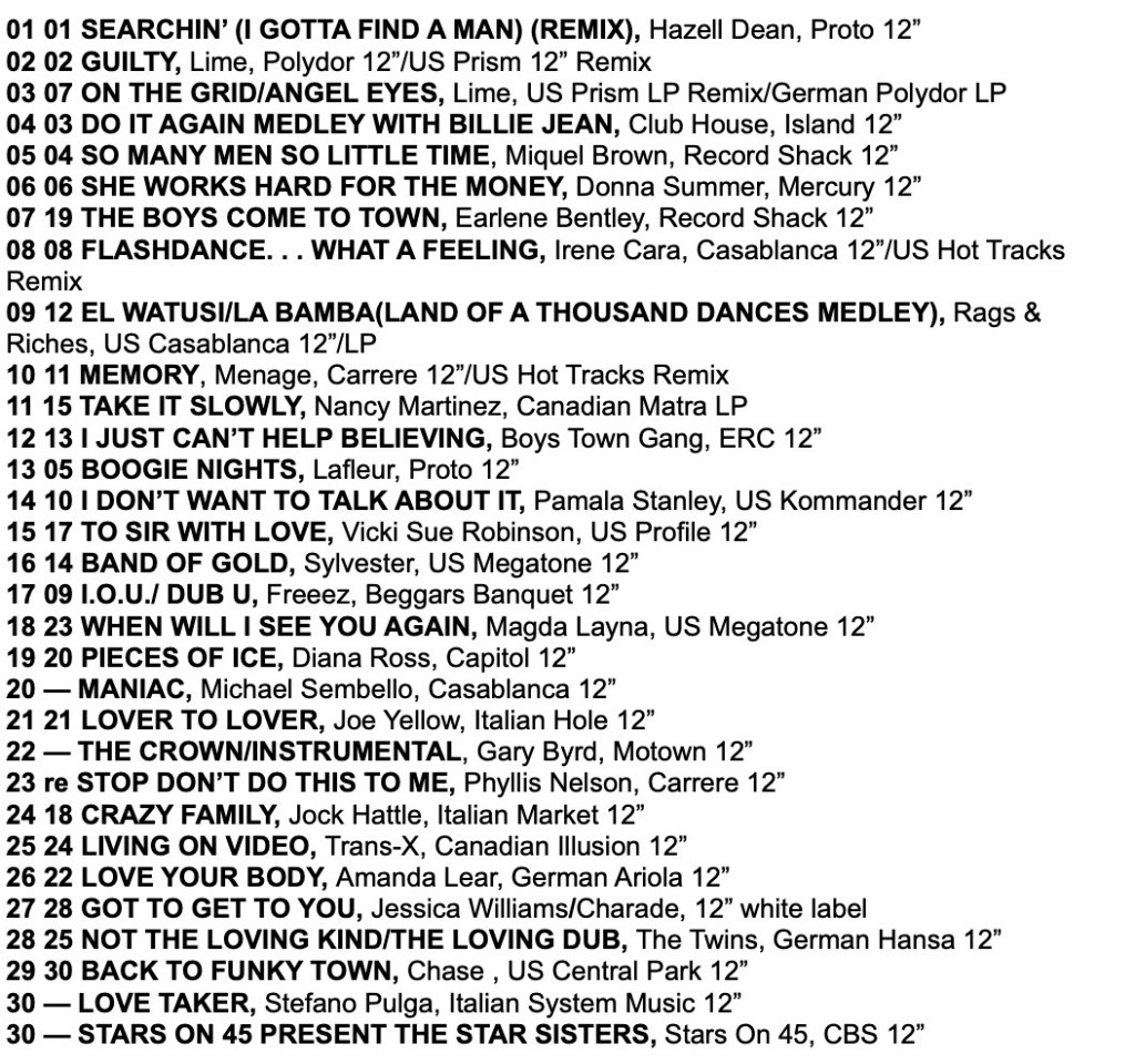 Record Mirror Boystown Disco Hi-NRG Chart 6th August 1983