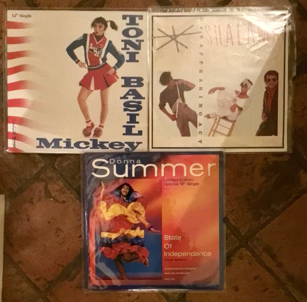 The Top Of The Pops TV programme sometimes gave me a further tiny taste of what might be going on in the outside world on the disco scene. Indeed, a few disco cuts from 1982 and 1983, including Toni Basil’s “Mickey“, Shalamar’s “Disappearing Act” and Donna Summer’s “State Of Independence” made it into my slowly growing record collection at the time, possibly hinting at how my musical tastes would later develop!