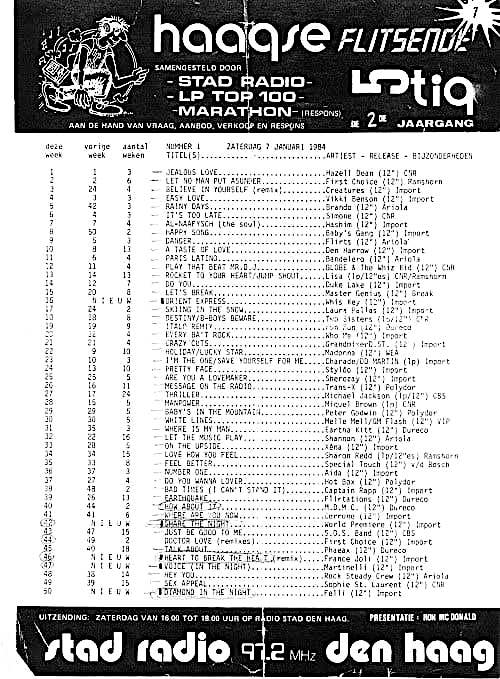 Radio Stad Den Haag Top 50 Chart 7th January 1984