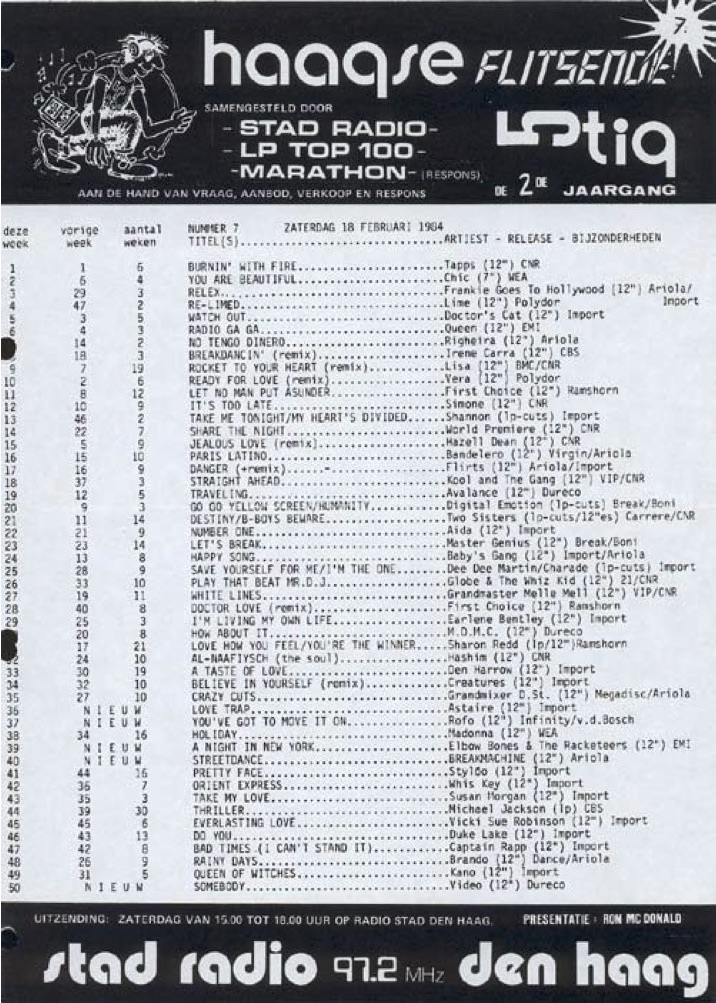 Radio Stad Den Haag Top 50 Chart 18th February 1984