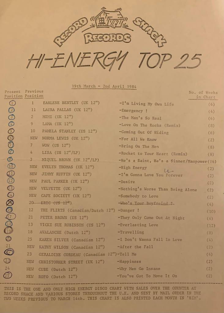 Record Shack Shop London High Energy Chart 5th February 1984