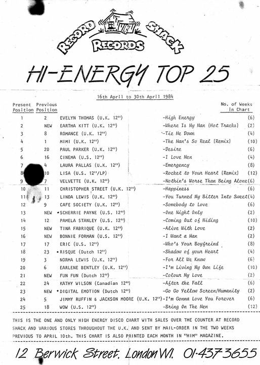 Record Mirror Boystown Disco Hi-NRG Chart 28th April 1984