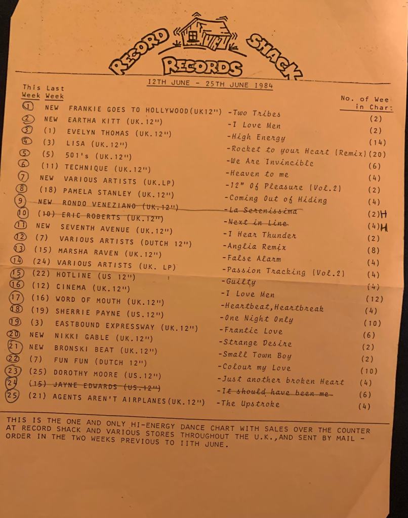 Record Mirror Boystown Disco Hi-NRG Chart 23rd June 1984