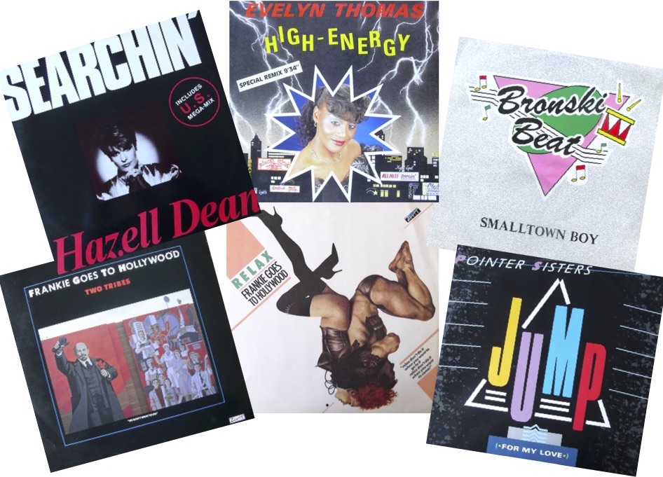 By June 1984, Hi-NRG dance tracks were filling the top ten national chart places, starting with Hazell Dean’s “Searchin’“, which had been re-released after it became a top 10 hit in the US Dance Charts, peaking at number 6 in the UK Top 40 on 3rd June 1984. The following week, on 10th June, Evelyn Thomas scored a top 5 hit with her eponymous anthem, “High Energy“, and she was followed on by Bronski Beat’s “Smalltown Boy” hitting number 3 on 17th June. A high point was the chart of June 24th, when Frankie Goes to Hollywood held both number one and number two spots with “Two Tribes” and “Relax” respectively. The final national UK chart of June 1984 saw the Pointer Sisters reach number 6 with “Jump (For My Love)“, a track that had been in the Record Mirror Hi-NRG chart for 19 weeks, originally on US import prior to its British release, since February 1984.