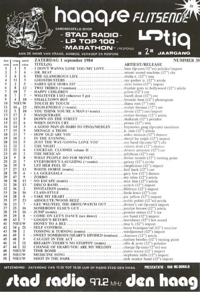 Radio Stad Den Haag Chart 1st September 1984