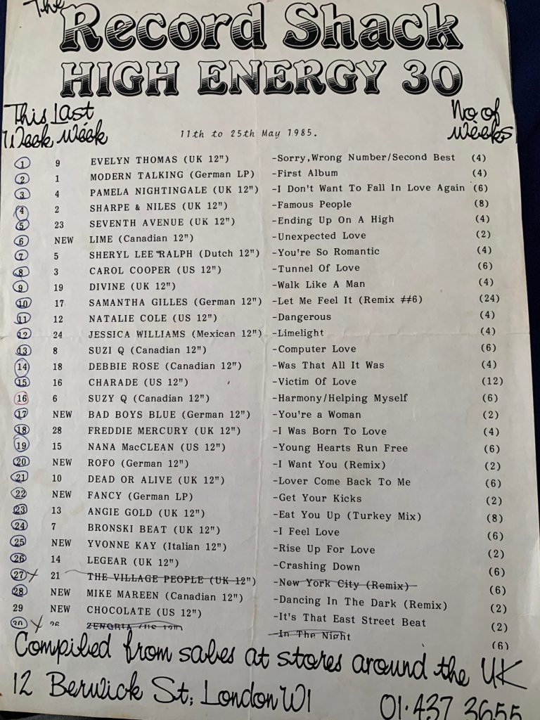 Record Shack Shop London High Energy Chart 25th May 1985