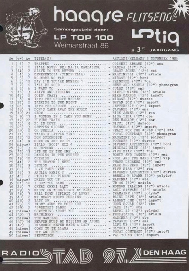 Radio Stad Den Haag Chart 2nd November 1985