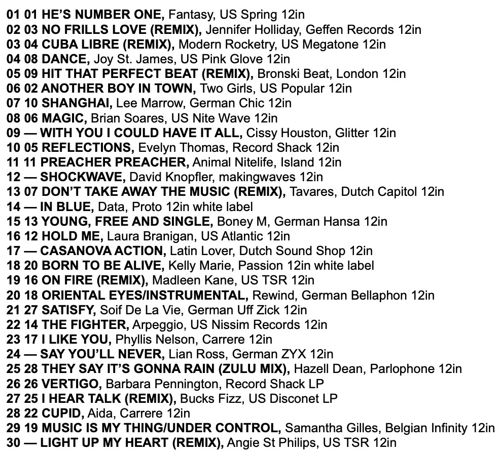 Record Mirror Hi-NRG Disco & Eurobeat Charts 1985