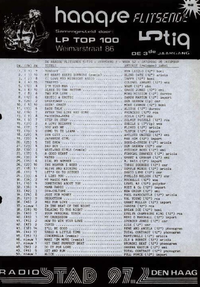 Street Scene Hi-NRG Chart 28th December 1985