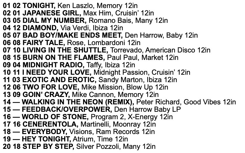 I Venti d’Azurro Italo Disco Chart 11th January 1986