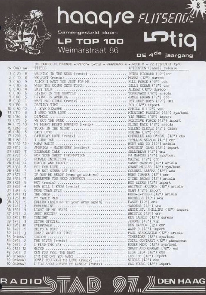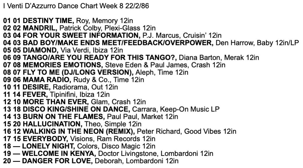 I Venti d’Azurro Italo Disco Chart 22nd February 1986