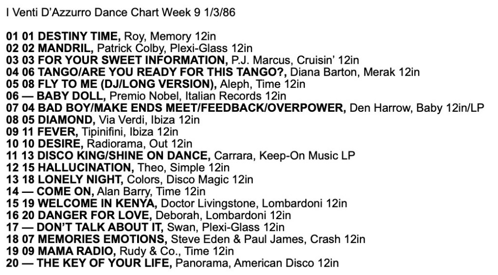 I Venti d’Azurro Italo Disco Chart 1st March 1986