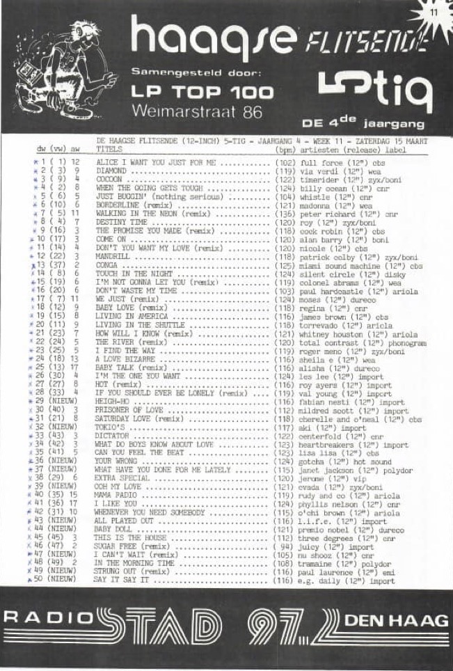 Radio Stad Den Haag Chart 15th March 1986