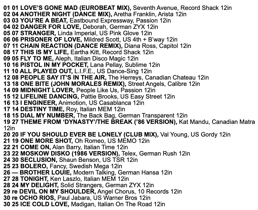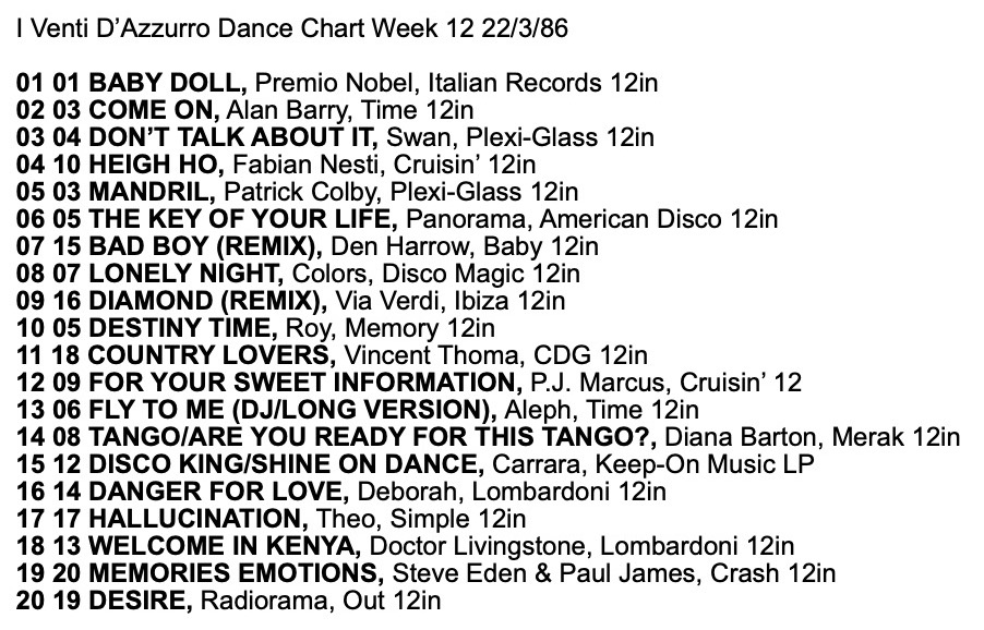I Venti d’Azurro Italo Disco Chart 22nd March 1986
