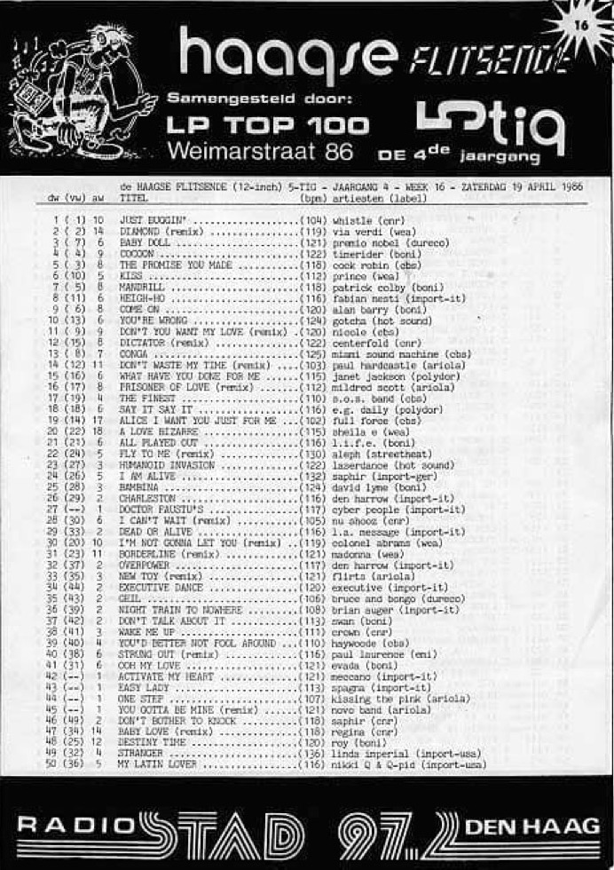 Radio Stad Den Haag Chart 19th April 1986