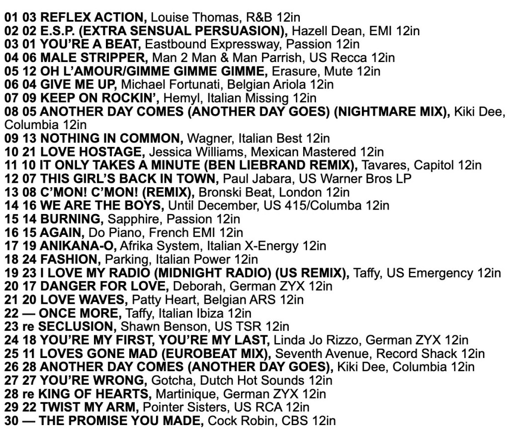 Record Mirror Eurobeat Charts 1986