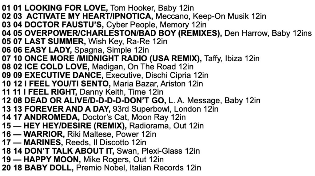 I Venti d’Azurro Italo Disco Chart 10th May 1986