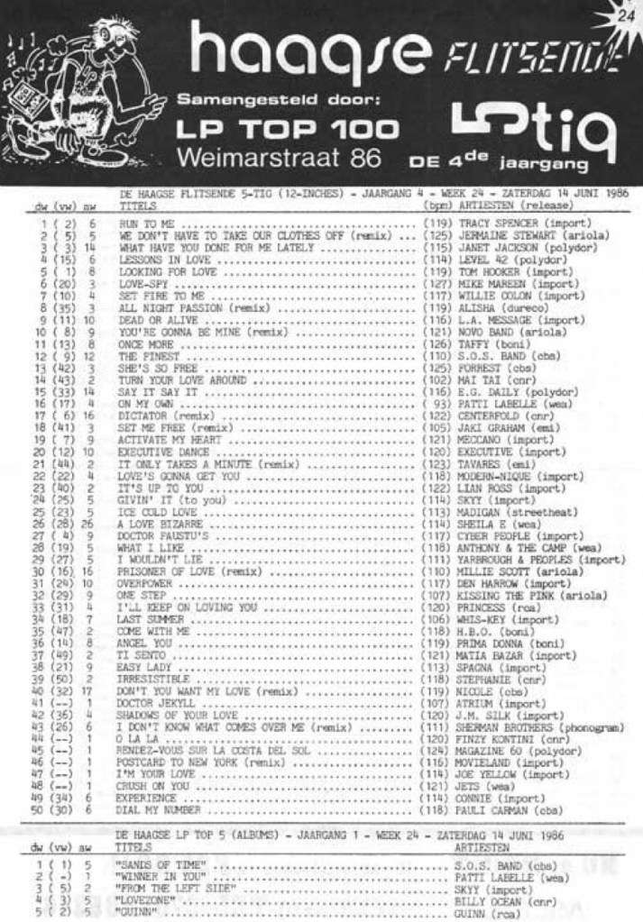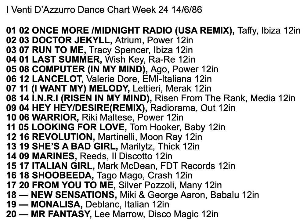 I Venti d’Azurro Italo Disco Chart 14th June 1986