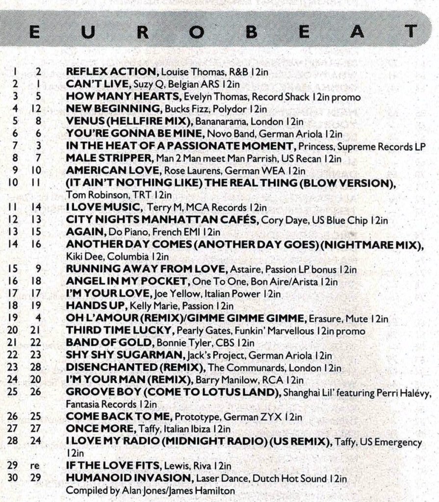 Record Mirror Eurobeat Charts 1986