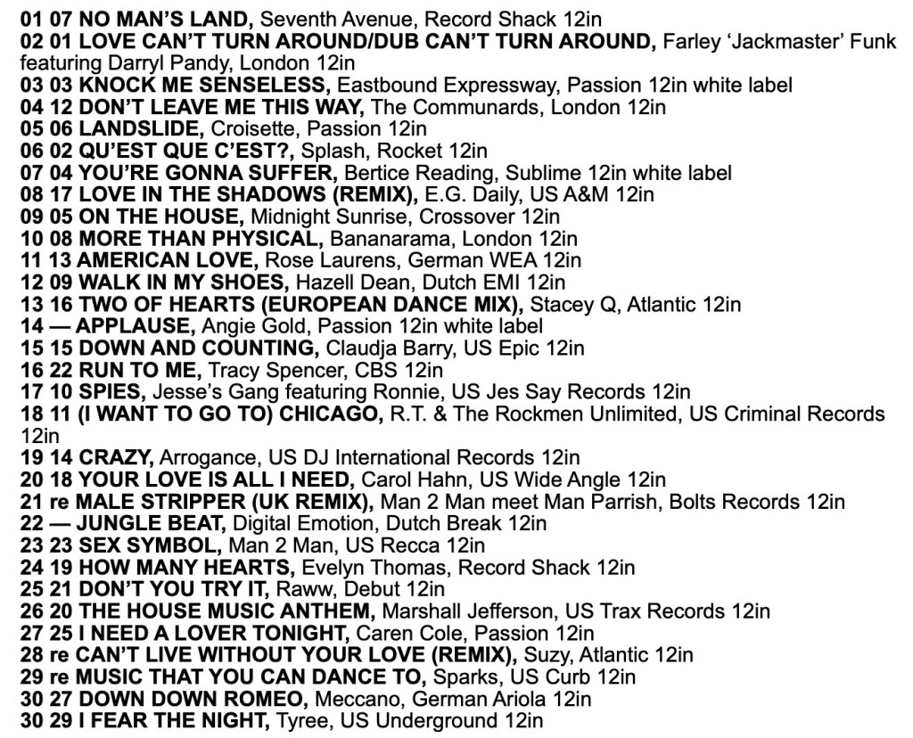 Record Mirror Eurobeat Charts 1986