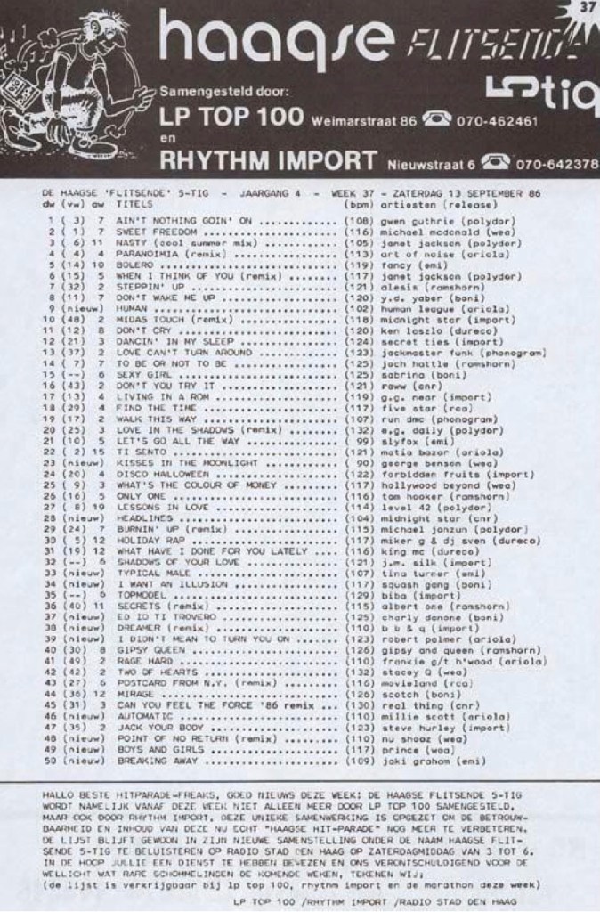 Radio Stad Den Haag Chart 13th September 1986