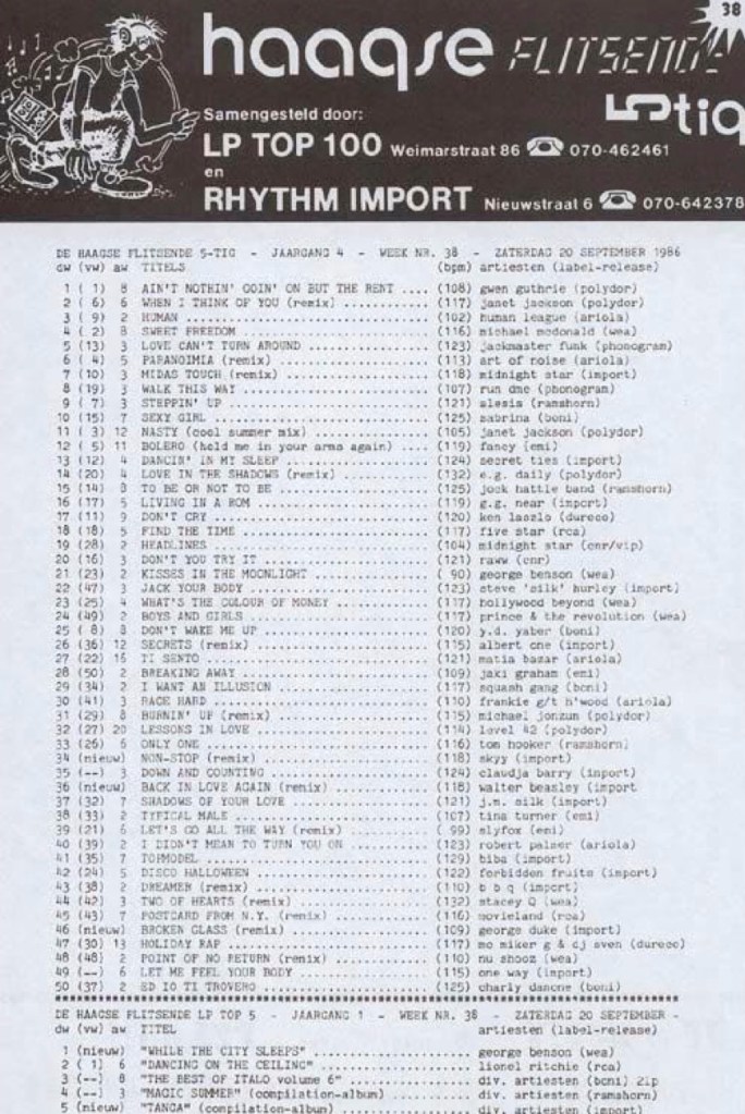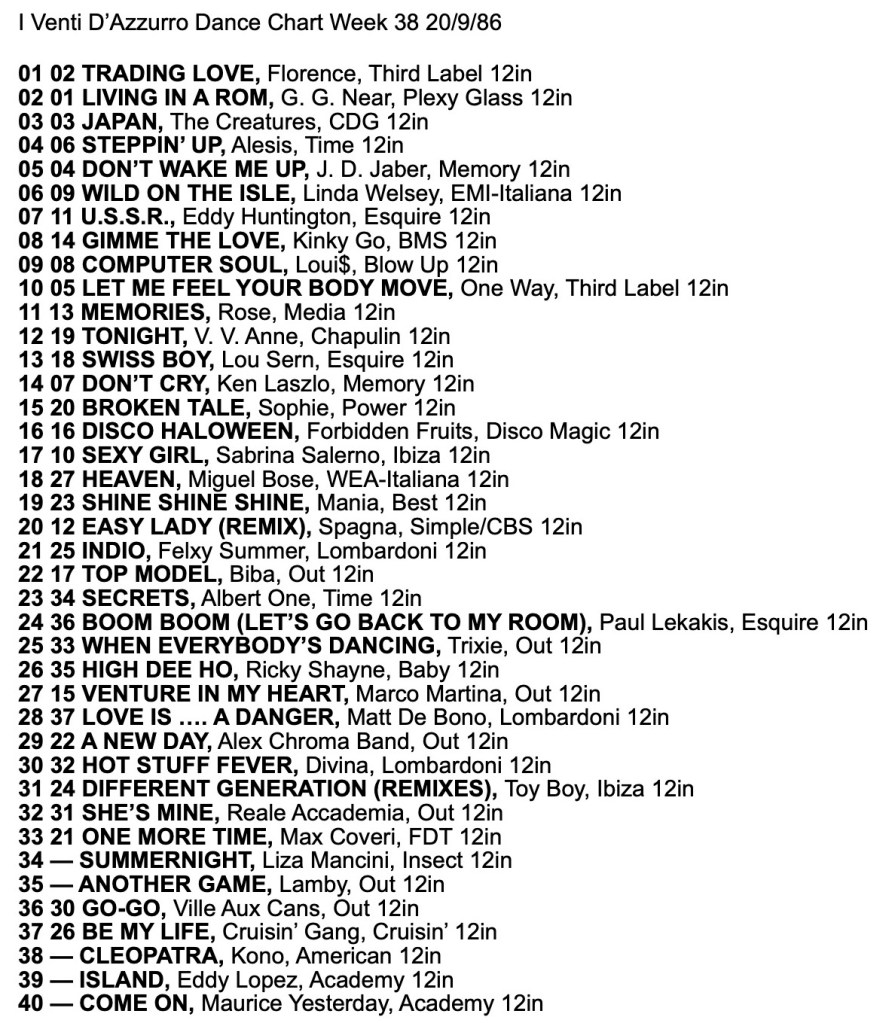 I Venti d’Azurro Italo Disco Chart 20th September 1986