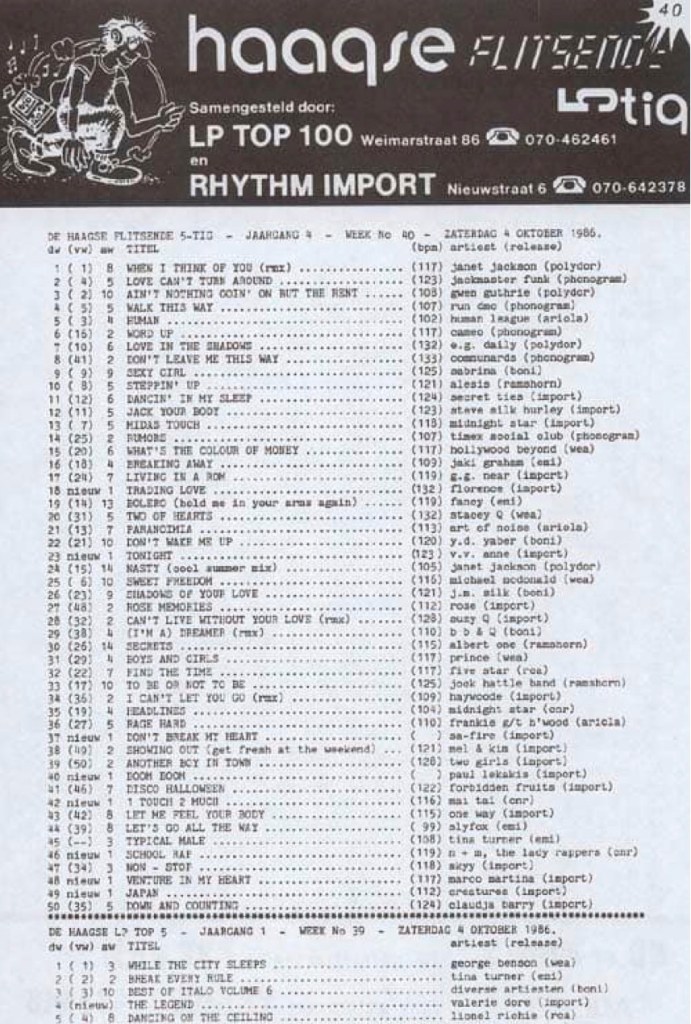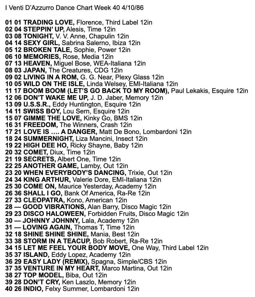 I Venti d’Azurro Italo Disco Chart 4th October 1986