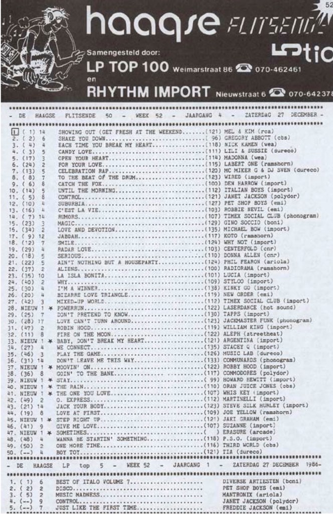 Radio Stad Den Haag Chart 27th December 1986