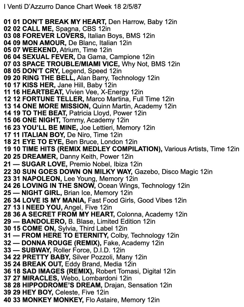 I Venti d’Azurro Italo Disco Chart 2nd May 1987