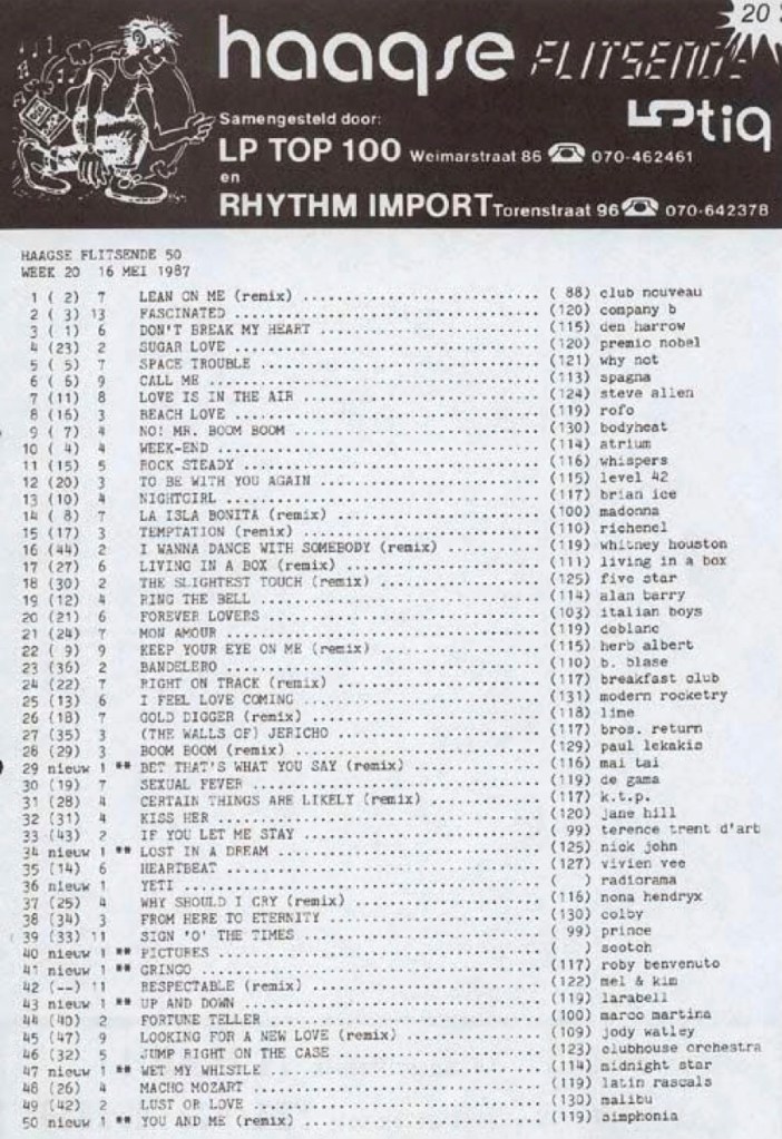 Radio Stad Den Haag Chart 16th May 1987