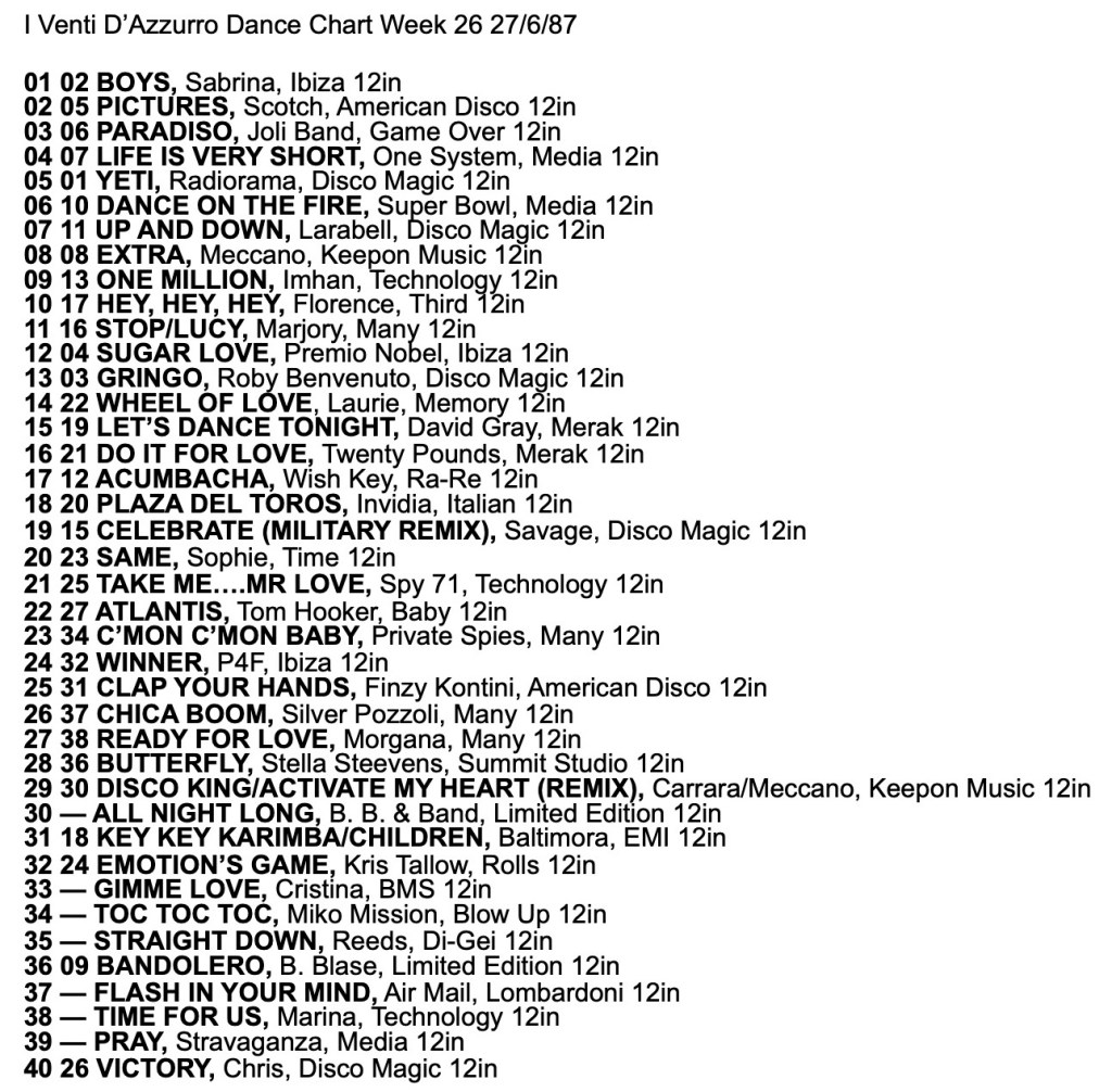 I Venti d’Azurro Italo Disco Chart 27th June 1987