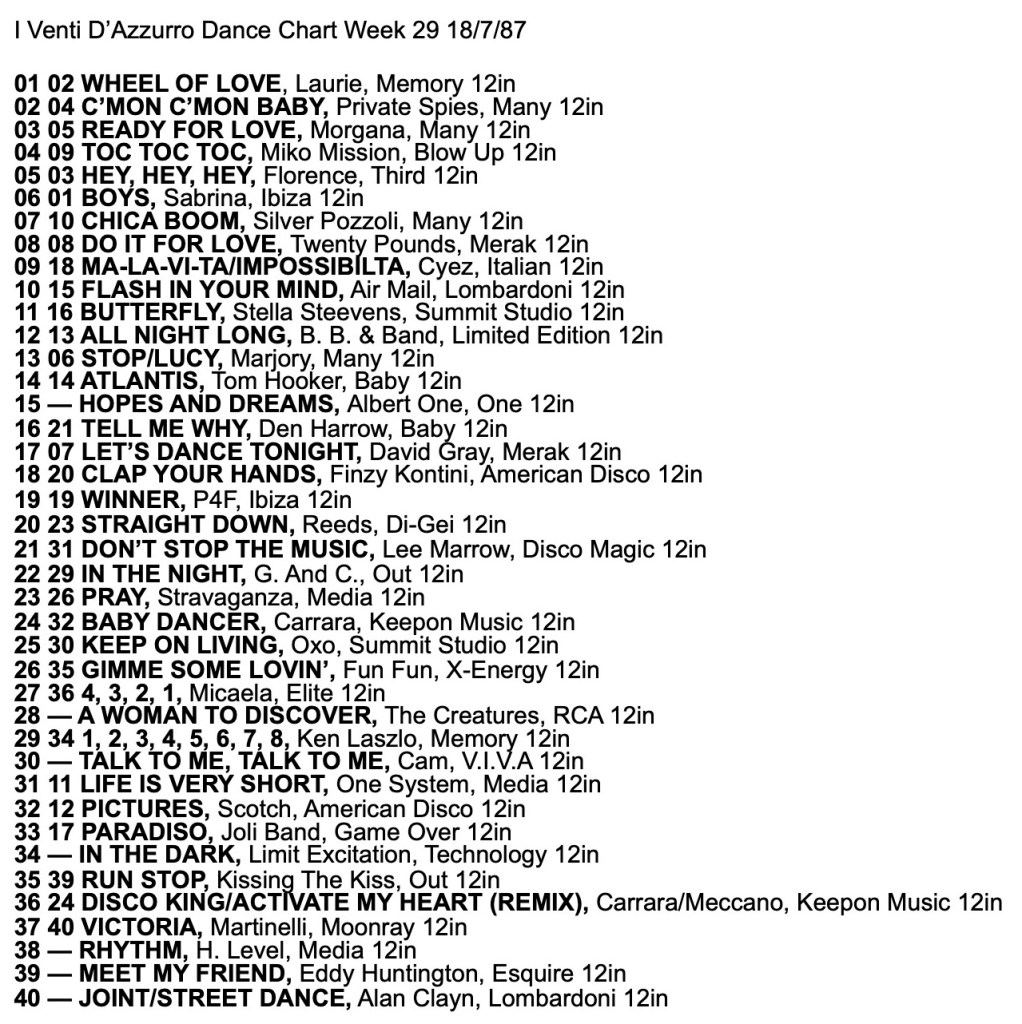 I Venti d’Azurro Italo Disco Chart 18th July 1987