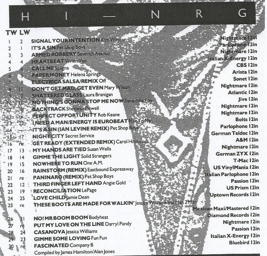 Record Mirror Hi-NRG Chart 18th July 1987
