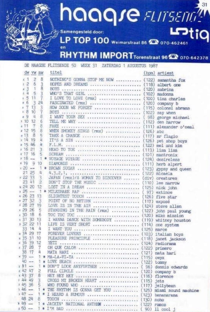 Record Mirror Eurobeat & Hi-NRG Charts 1987