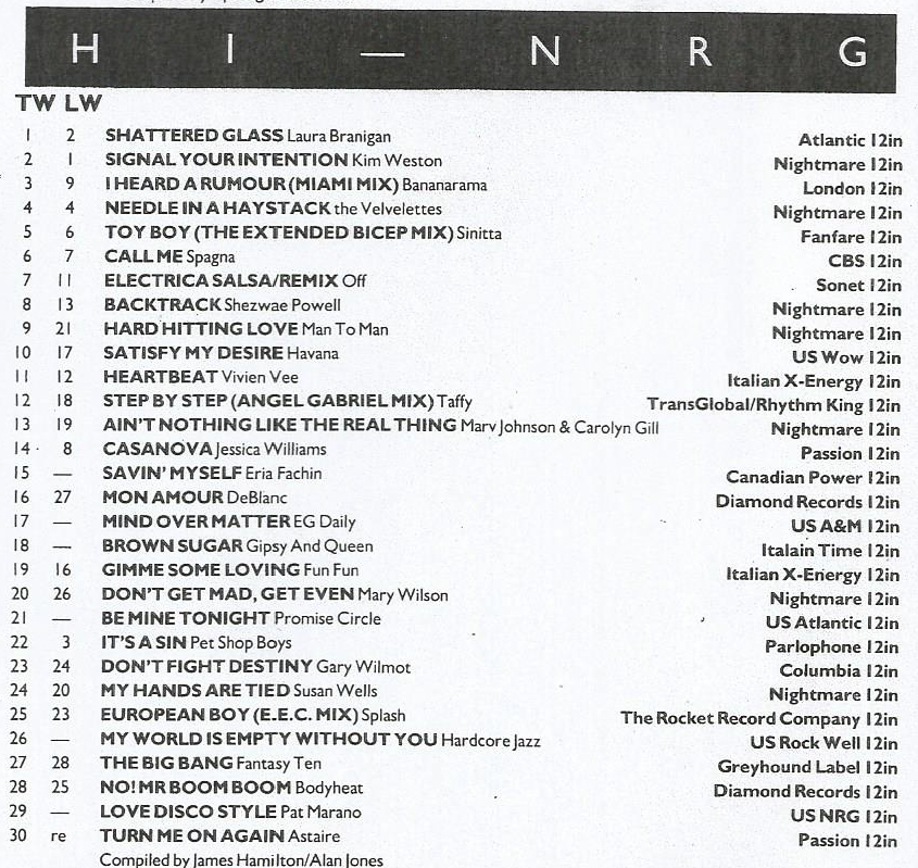 Record Mirror Eurobeat & Hi-NRG Charts 1987