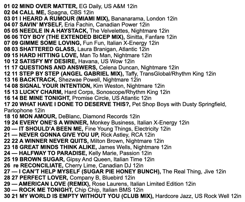 Record Shack Shop London High Energy Chart 27th August – 10th September 1987