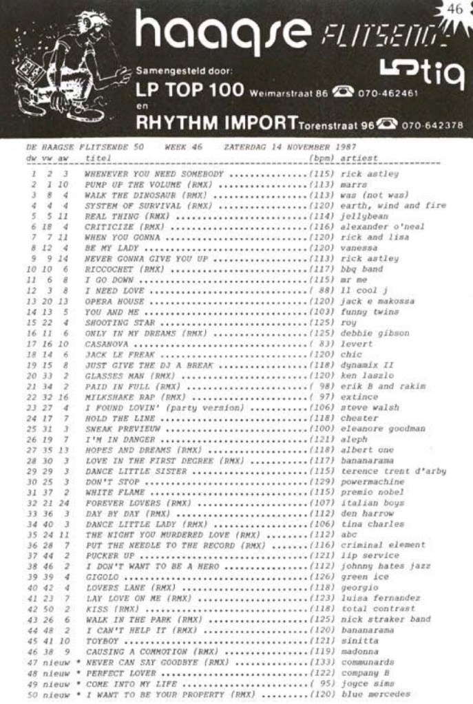 Radio Stad Den Haag Chart 14th November 1987