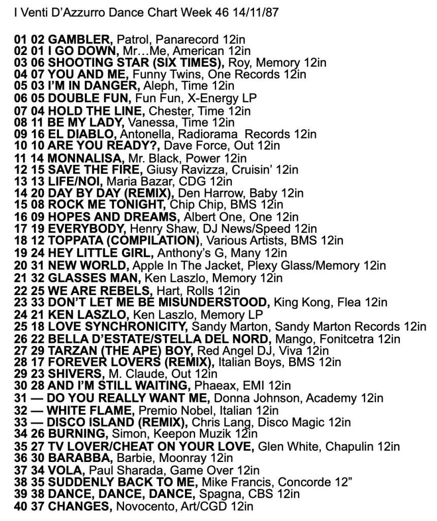 I Venti d’Azurro Italo Disco Chart 14th November 1987