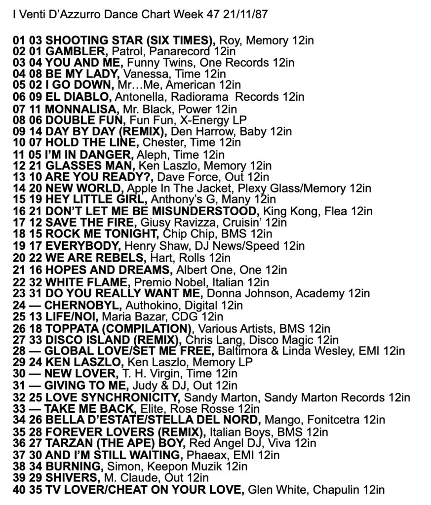 I Venti d’Azurro Italo Disco Chart 21st November 1987