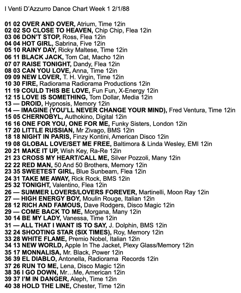 I Venti d’Azurro Italo Disco Chart 2nd January 1988