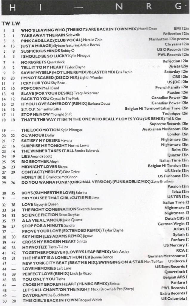 Record Mirror Hi-NRG Chart 2nd April 1988